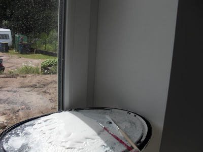 Auch heute haben wir reichlich Farbe an die Wände gebracht, inklusive leider notwendigen Ausbesserungsarbeiten.