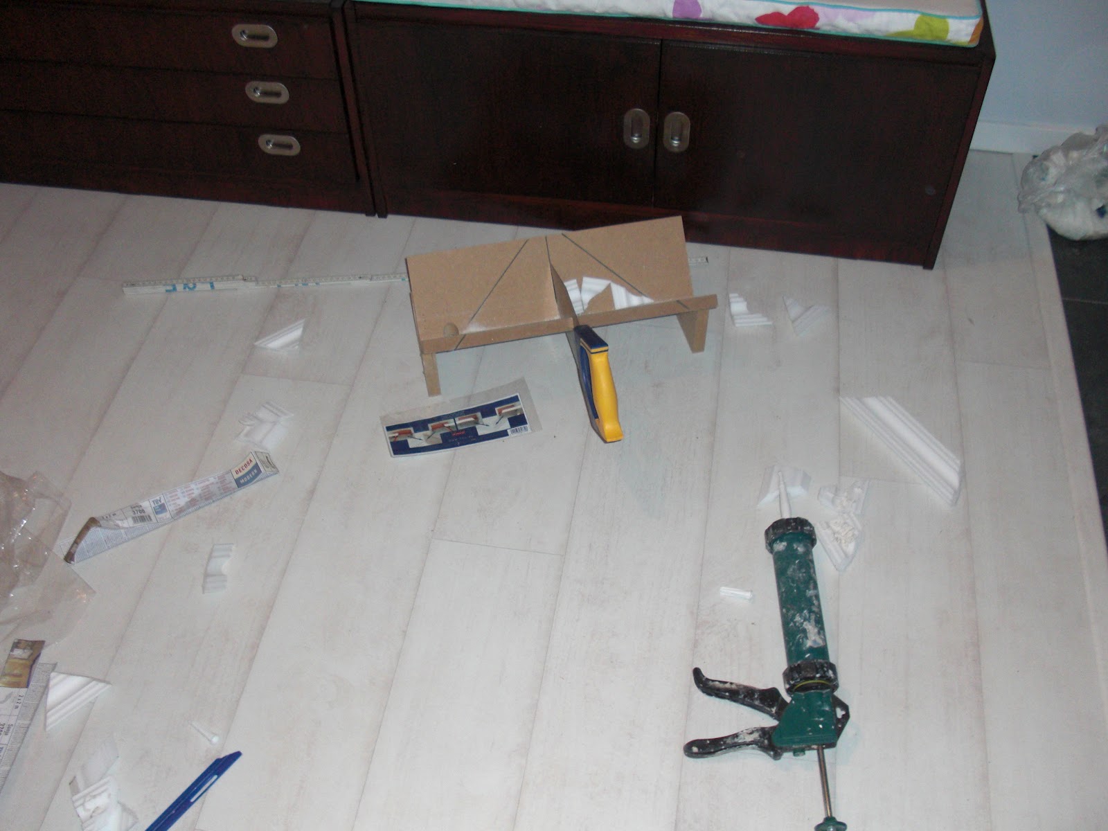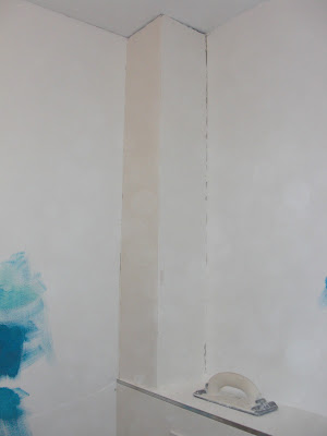 Vorarbeiten: die Jakodur Platte in der Ecke verspachteln und schleifen: