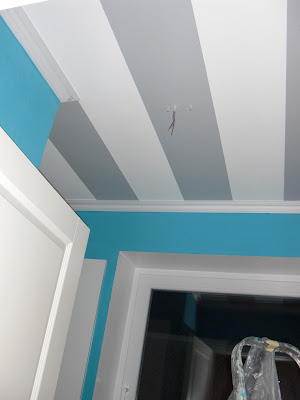 Der Lampenauslass ist genau in der Mitte des Raumes, also habe ich den mittleren Streifen daran ausgerichtet.