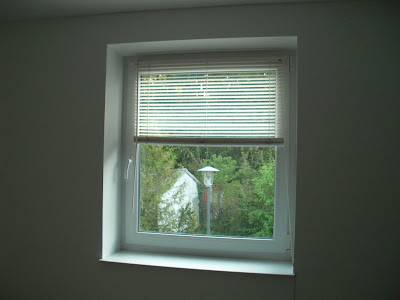 Im extrem provisorischen Gästezimmer, gibt es jetzt die Möglichkeit die des Nachts dauer leuchtende Straßenlaterne etwas zu dimmen. Hier hängt jetzt erstmals die alte Klemmjalousie aus der Küche in meiner ersten Wohnung.