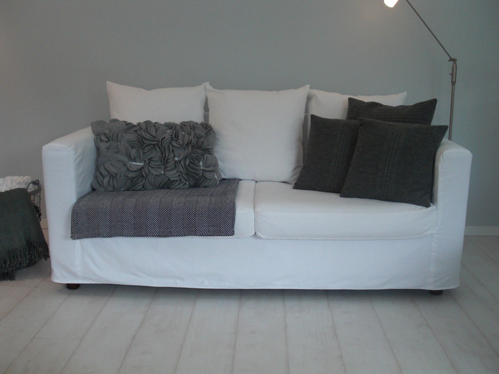 Bei so einem großen Teil bin ich natürlich meiner Liebe zu schnee-weiß treu geblieben. Der Stoff war mal wieder ein e-bay Schnäppchen (beständiges Suchen lohnt sich wirklich) und um noch mehr zu sparen habe ich die Reißverschlüsse für die Sitzkisssen von den Unterbezügen der ikea-Baybmatratzen aus dem Flur gerettet.