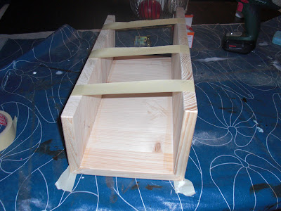 Mit meiner treuen Schleif-Maus habe ich die Kanten abgerundet und dann mit Leim (der, der in nur 5 Minuten antrocknet ist genial) und Klebeband und zur Sicherheit auch zwei Winkeln ein „U“ draus gemacht.