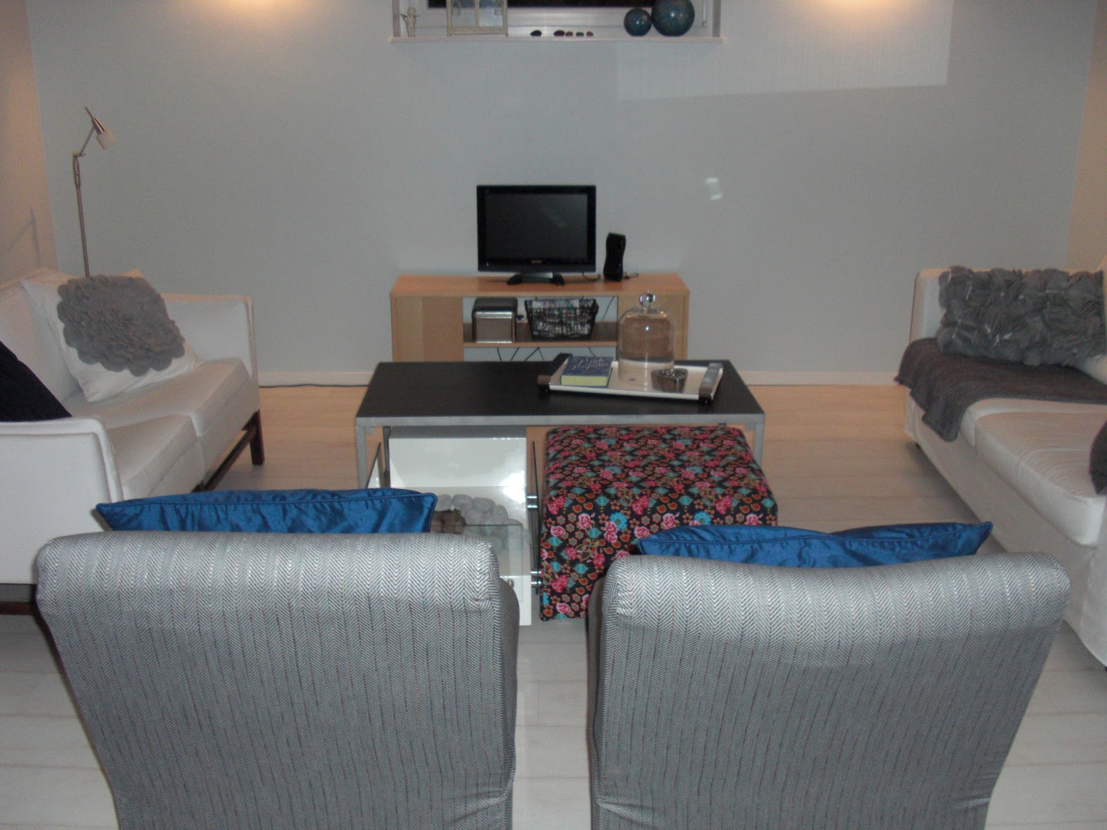 Und dann: Mal wieder eine Husse [mir ist nicht entgangen, dass dies der dritte Post in Folge ist, der das Wort Husse im Titel trägt ;)]. Es bleibt preisgünstig denn dafür habe ich den ganz einfachen Stoff von Ikea genommen und ihn zusammen mit den Vorhängen für den HWR gefärbt. Eine Husse war schlichtweg einfacher als den Tisch komplett weiß zu lackieren – ich hasse lackieren.
