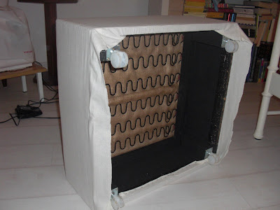 Zunächst habe ich den alten Unterbezug neu gemacht (allerdings mit einem dünneren Schaumstoff Polster auf der Sitzfläche)