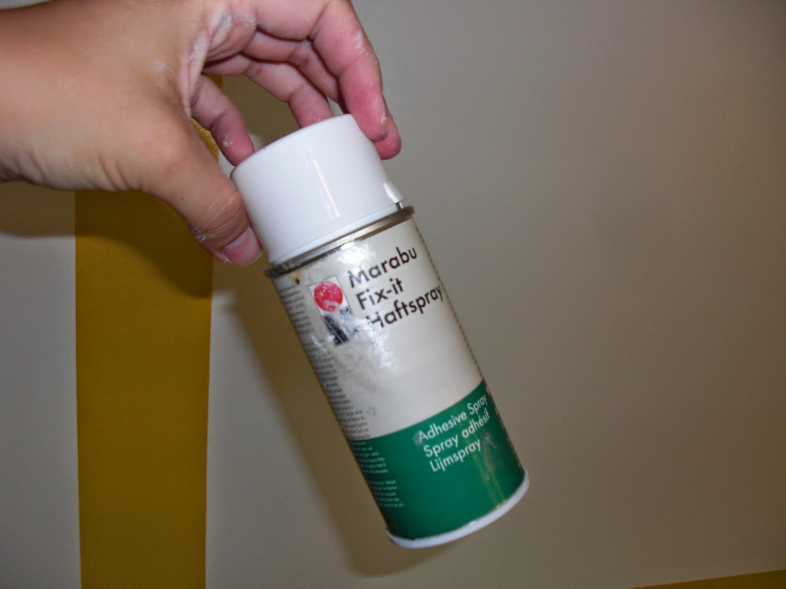 Mit etwas Haftspray (noch hiervon übrig, Sprühkleber hatte ich nämlich leider keinen mehr und es war Sonntag) habe ich dann zunächst das Bild vor das weiße Quadrat im Bad geklebt