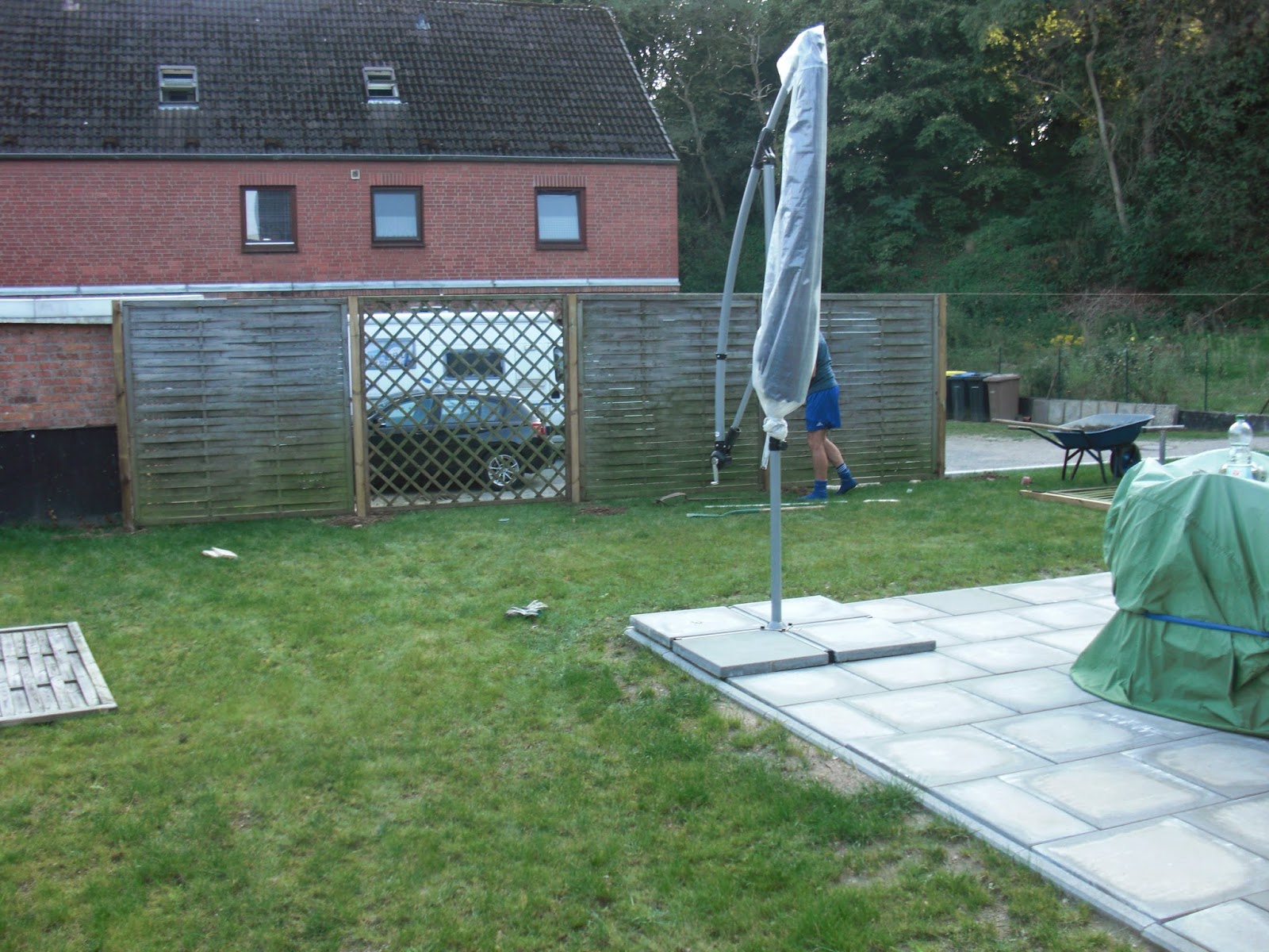 Endlich war es so weit (die Ankündigung ist ja schon ne Weile her), mein Schwager hat mit mir einen Zaun gesetzt und damit aus meiner Rasenfläche einen Garten gemacht.