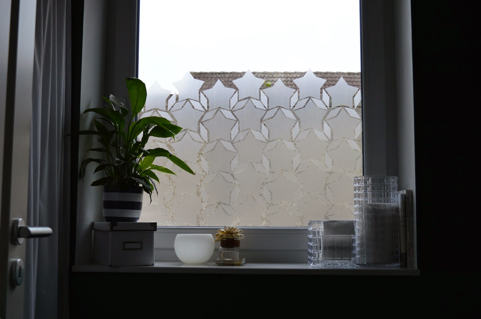Bei einem Besuch in dem Raum habe ich darüber sinniert und dann fiel mir ein, dass ich noch normal klebende Fensterfolienreste liegen habe.