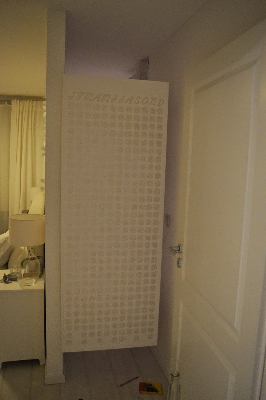 Letzte Woche stand der neue Geburtstagskalender tatsächlich schon an seinem Bestimmungsort. Damit man trotzdem noch einfach in die Ankleide kommt bekam er erst mal Türscharniere.