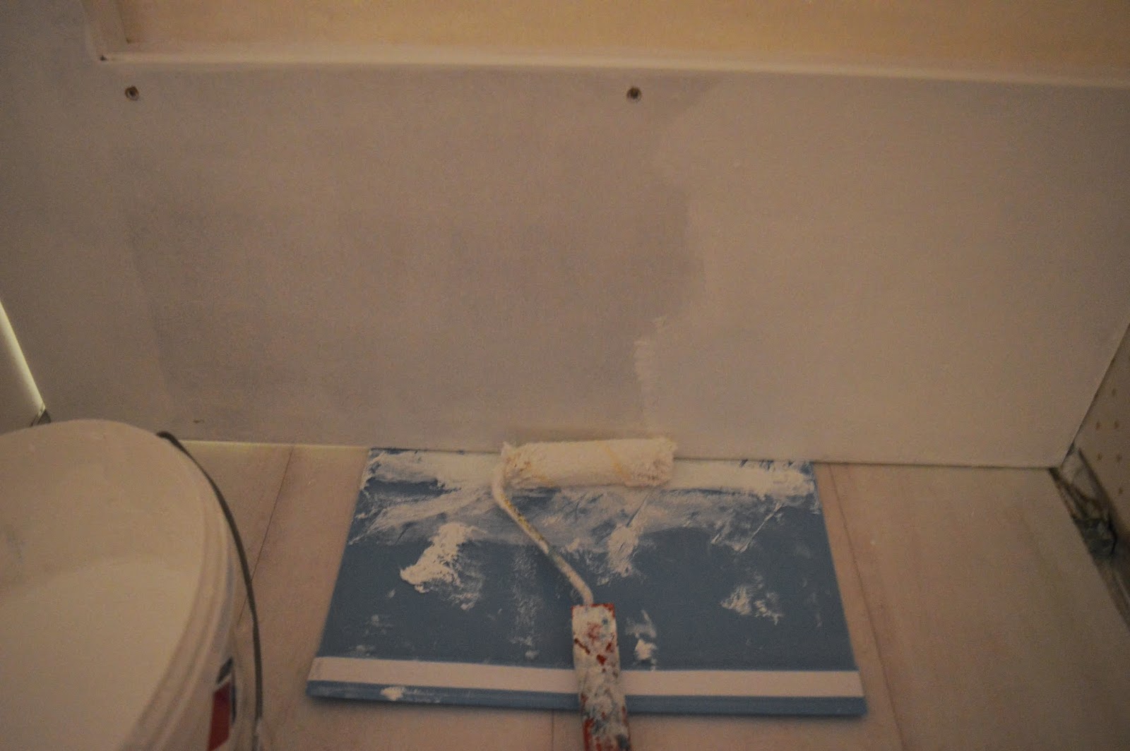 Und dann folgte Farbe (Latex Wandfarbe, meiner bisherigen Erfahrung nach geht die für so was auch gut, braucht nur ein paar mehr Schichten als auf der Wand – sowas meint Blenden und ähnliches, für Sideboards oder so würde ich immer Lack nehmen).