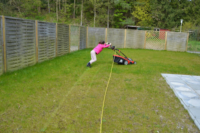 Der Rasen müsste wohl mal vertikutiert, aber als ersten Schritt habe ich ihn erstmal gestutzt (bzw. stutzen lassen – Kinderarbeit 😉