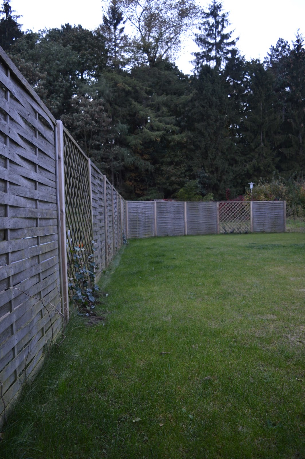 Efeu vermehre ich ja normalerweise in dem ich Abschnitte von dem am Nordzaun in den Boden stecke und mich dann in Geduld übe. Aber bei den Rankelementen im Zaun nach Süden hat mir das zu lange gedauert. Also habe ich bei meinem Lieblingshändler ein paar schon etwas fertigere Pflanzen mit richtigen Wurzeln gekauft und davor gesetzt.