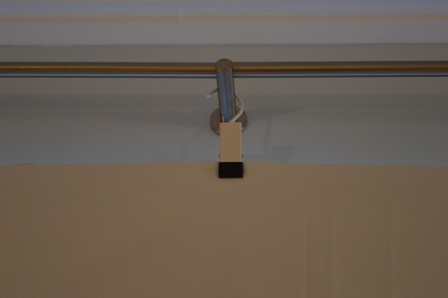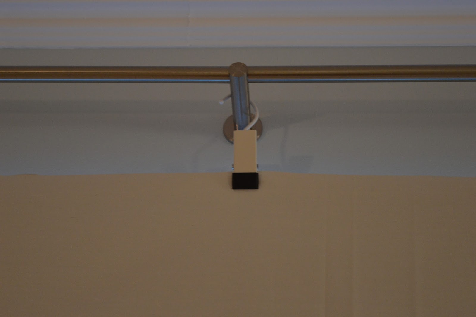 Einfach nur die Halter an die Träger der Vorhangstangen gehängt und den Stoff rein geklemmt: