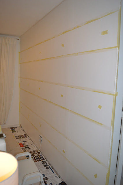 Dann habe ich Streifen abgeklebt und die Kanten weiß über gemalt, damit keine Farbe drunter läuft und mit Klebeband makiert wo keine Farbe hin soll – sicher ist sicher.
