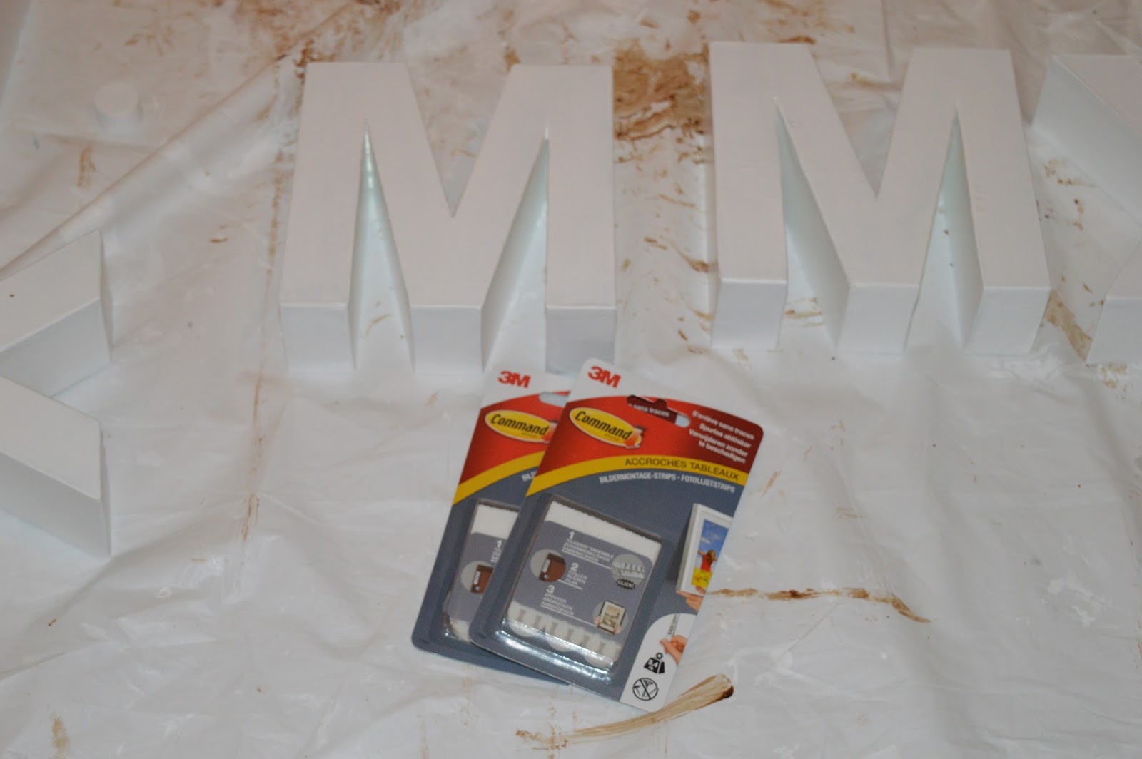 Und mit 3M Command an der Wand befestigt (unbedingt der Anleitung folgen und noch mal abnehmen und „anziehen“ lassen). Die Streifen habe ich je längs halbiert, da die Buchstaben ja quasi nichts wiegen und die Streifen echt kostspielig sind.