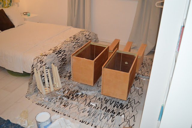 Und neue Nachttische von ebay habe ich mir auch gegönnt (waren drei Teile, das größere wohnt jetzt bei meiner Schwester) und umlackiert (zusammen mit den Schuhregalen, also schon ne Weile her)