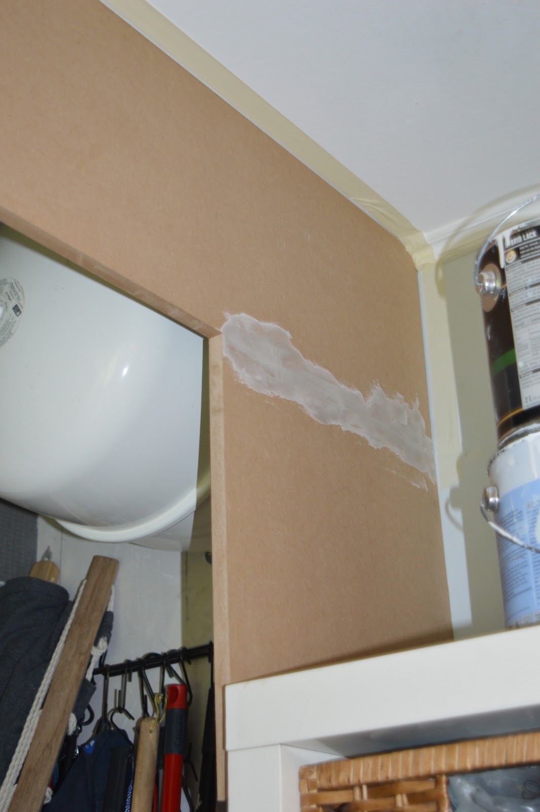 An deren Fronten habe ich 3mm MDF geleimt und dann mit der Wandfarbe angemalt.